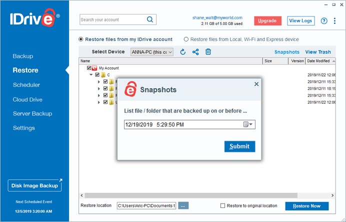 IDRIVE提供功能齐全的免费云备份服务。有了“基本”计划,您将获得一个慷慨的10 GB存储空间并获得将服务转介给朋友的帐户积分。关于iDrive的伟大之处之一是,它允许您使用任何单个帐户备份无限量的设备,而许多其他服务为每个设备收费。此外,文件同步功能允许您自动同步所有文件和文件夹,并且使用快照和版本操作功能,您还可以存储多达30个以前的数据版本。