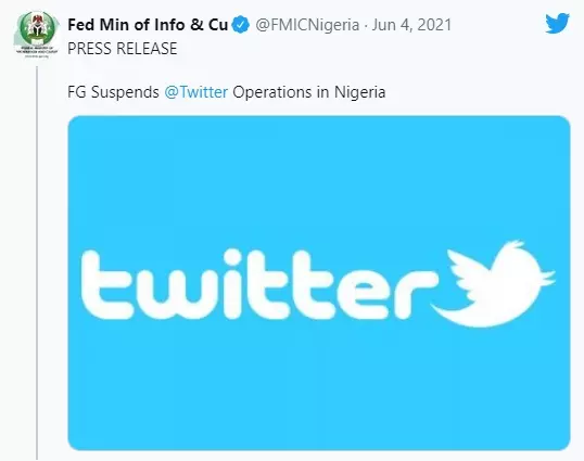 根据尼日利亚联邦信息和文化部的说法,流行的社交媒体网站无限期地被暂停,因为它的持续使用了“能够破坏尼日利亚的公司存在的活动”。