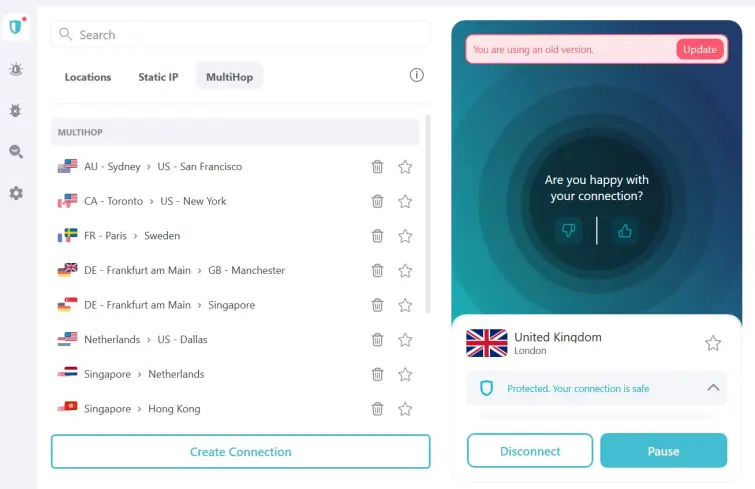如果您想要额外的隐私,Surfshark也提供Multihop(双VPN)连接这通过通过多个服务器将流量路由来增加了额外的保护层。