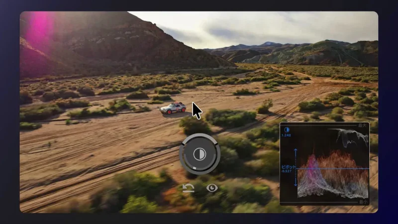 最大的特点是使用平视显示器(HUD),可以实时可视化调整。除了能够结合鼠标的上/下/左/右移动来调整曝光和黑电平之外,还引入了一种称为“区域”的新概念,可以更详细地控制阴影、中频和高光。即使没有专业知识,您也可以仅凭手边的感觉创造出您想要的音色。