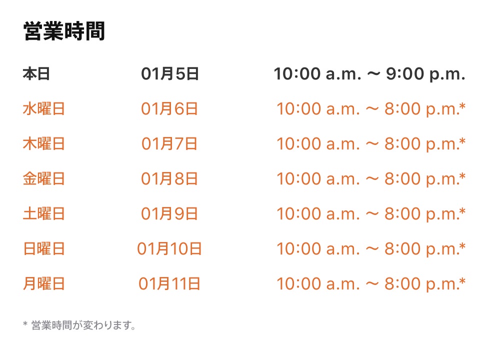 1月5日,苹果将从明天 6 日开始在日本所有 Apple Store 实行缩短营业时间。我宣布了这一点。