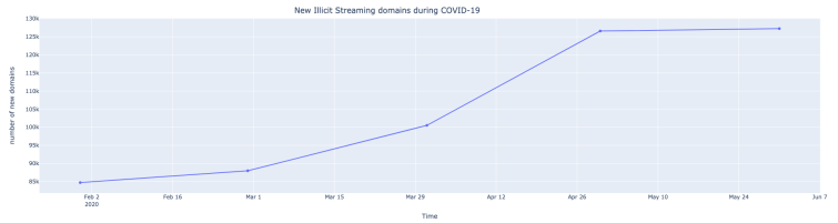 - 自大流行開始以來創建的新非法網站域名的數量。